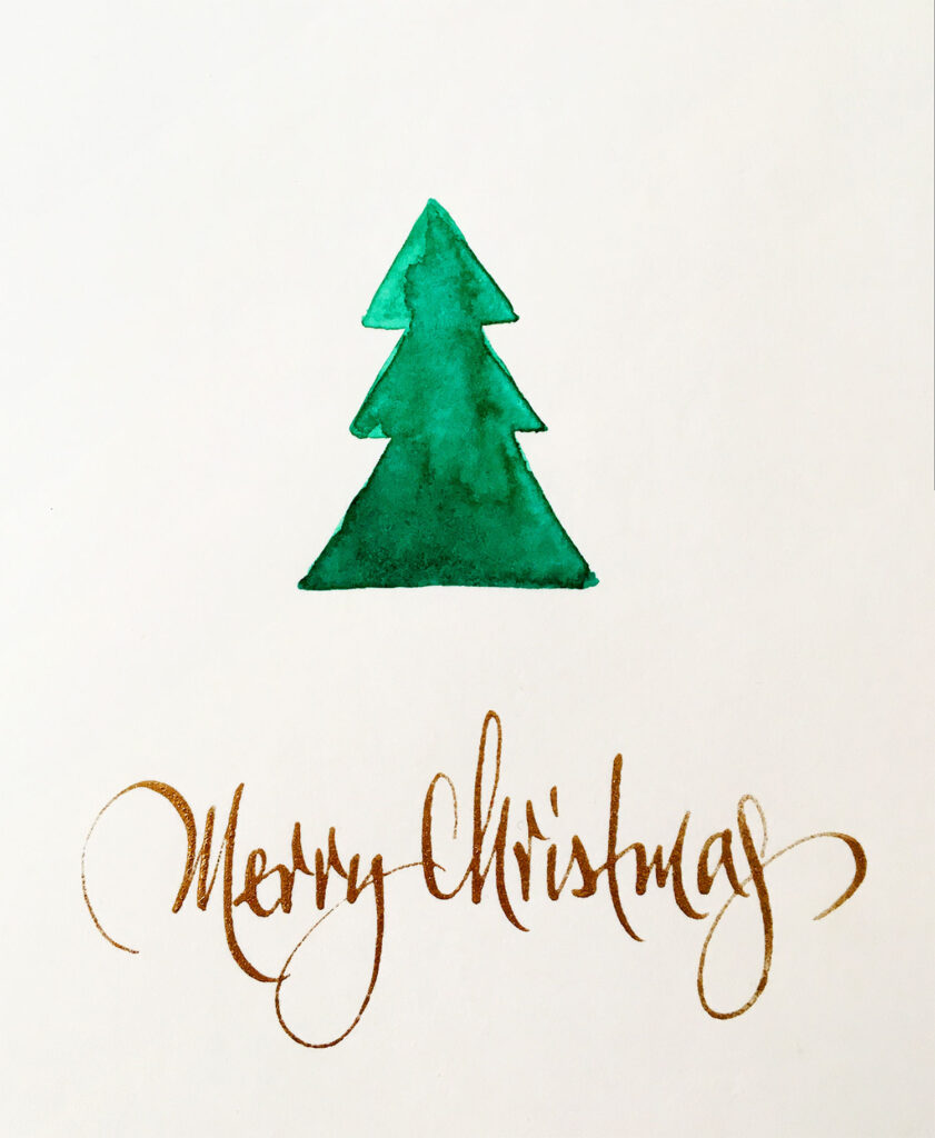 This year’s Christmas card brings these two practices together: a watercolour tree paired with free cursive lettering.