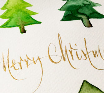 This year’s Christmas card brings two practices together: a watercolour tree paired with free cursive lettering.